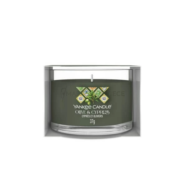 - Yankee Candle Olive & Cypress Mini Świeczka. Zielony, naturalny zapach oliwek i cyprysu z ciepłymi akcentami bursztynu i mchu, przenoszący do toskańskich lasów
