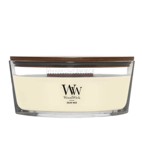 - Woodwick Elipsa Świeca Solar Haze to kompozycja, która przywodzi na myśl wschodzące słońce przedzierające się przez delikatną mgłę poranka.